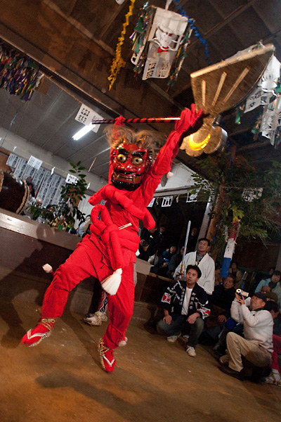 太鼓と笛が奏でる拍子と囃子声にのせて、幾種類もの舞が夜を徹して繰り広げられる「花祭」。約700年前に修行を積む修験者が伝えたとされ、八百よろずの神を勧請し舞を奉納して、生命の再生と願の成就を祈る。愛知県奥三河地方の山奥に伝えられてきた、鎌倉以来の伝統を持つ有数の民俗芸能であり、国の重要無形民俗文化財に指定されている。