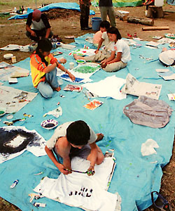 テーマ:「身体で感じて、身体で色を探そう!! ついでに、みんなと話がしたい!! から、松林をギャラリーにする」のだ!!。そして、最後に紙風船を作って、染めて、飛ばす。